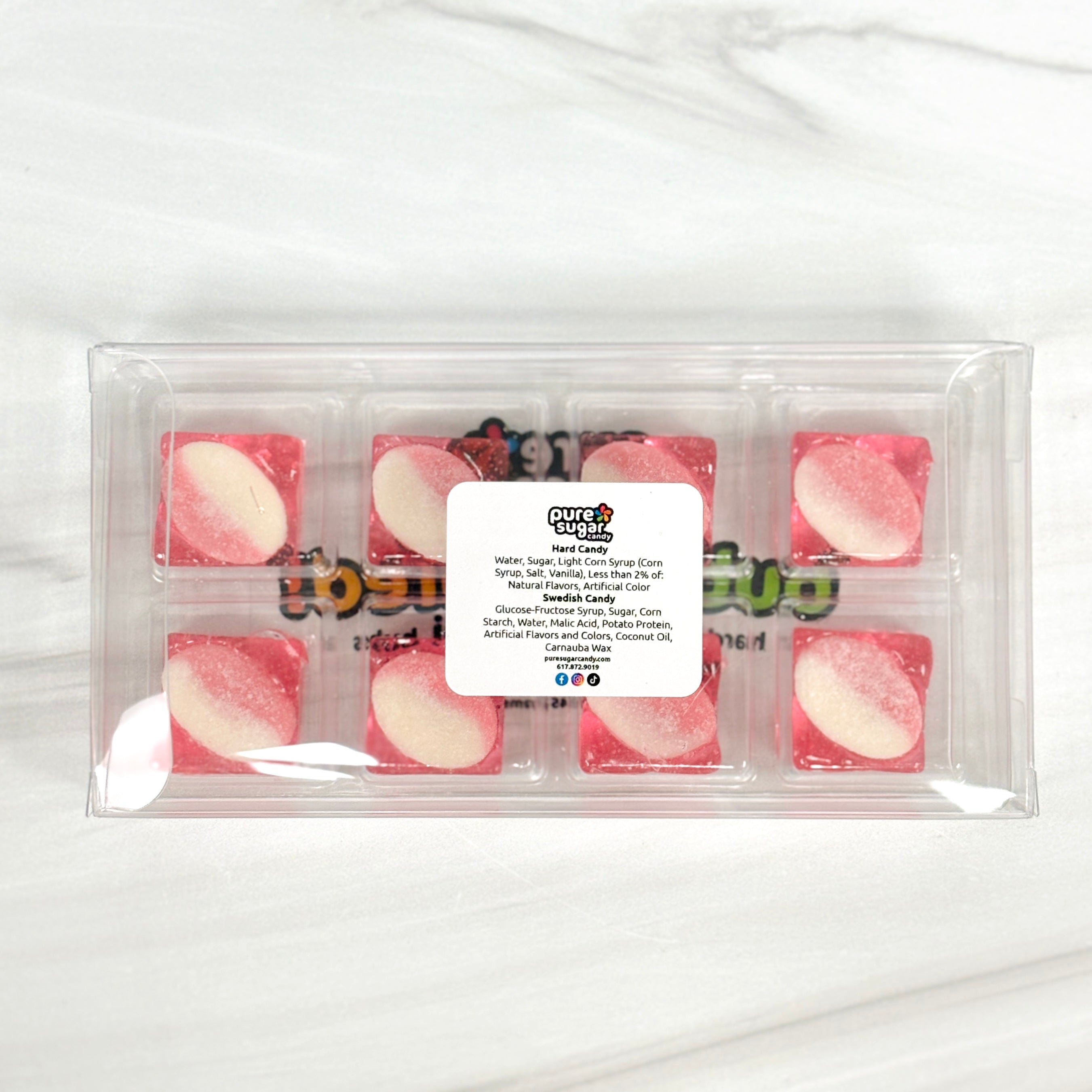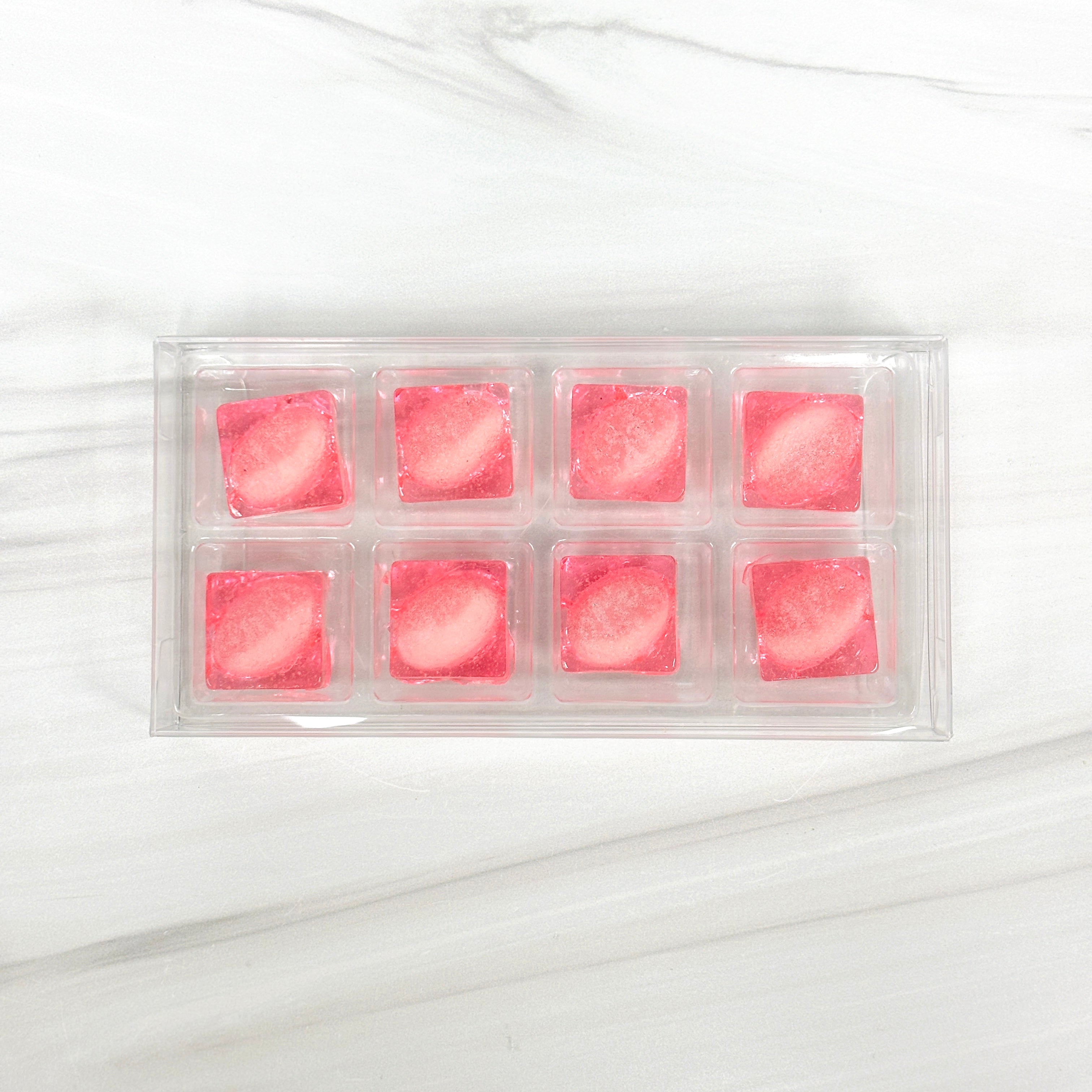 -STRAWBERRY/VANILLA MINI OVALS INSIDE A STRAWBERRY HARD CANDY SQUARE