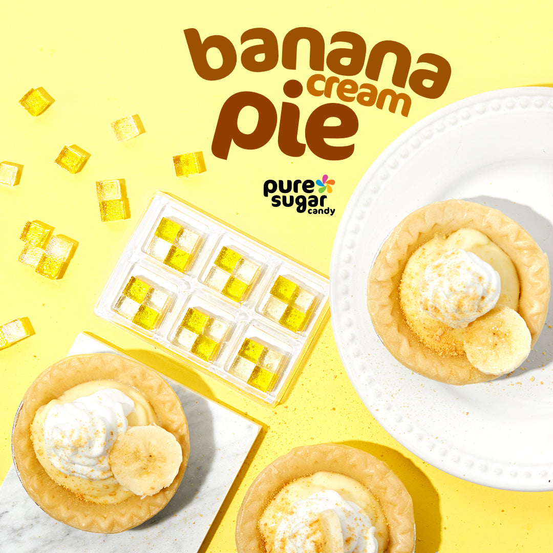 If you’re a Banana lover then these Banana flavored Candy Cubes are perfect for you. There is a banana cube and a cake batter cube to create the flavors Banana Cream Pie.