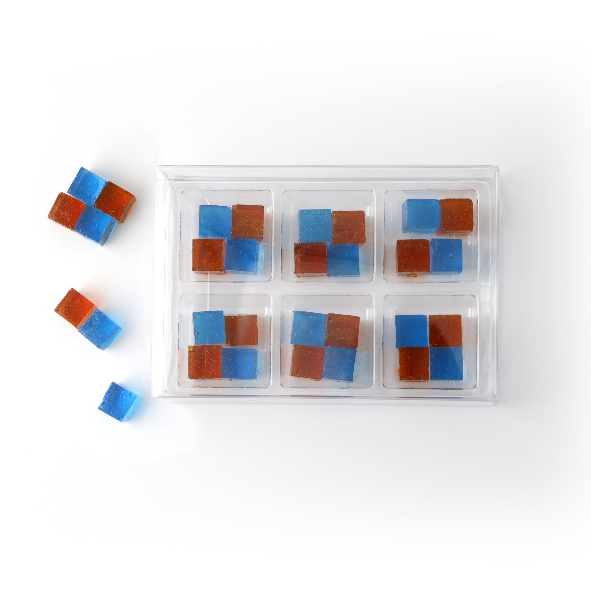 A little bit of candy that packs an amazing amount of flavor. Each cube is hand-poured using all-natural flavors; slight color variations may occur. With only 2 1/2 calories per cube it’s a little candy that can satisfy any sweet tooth!