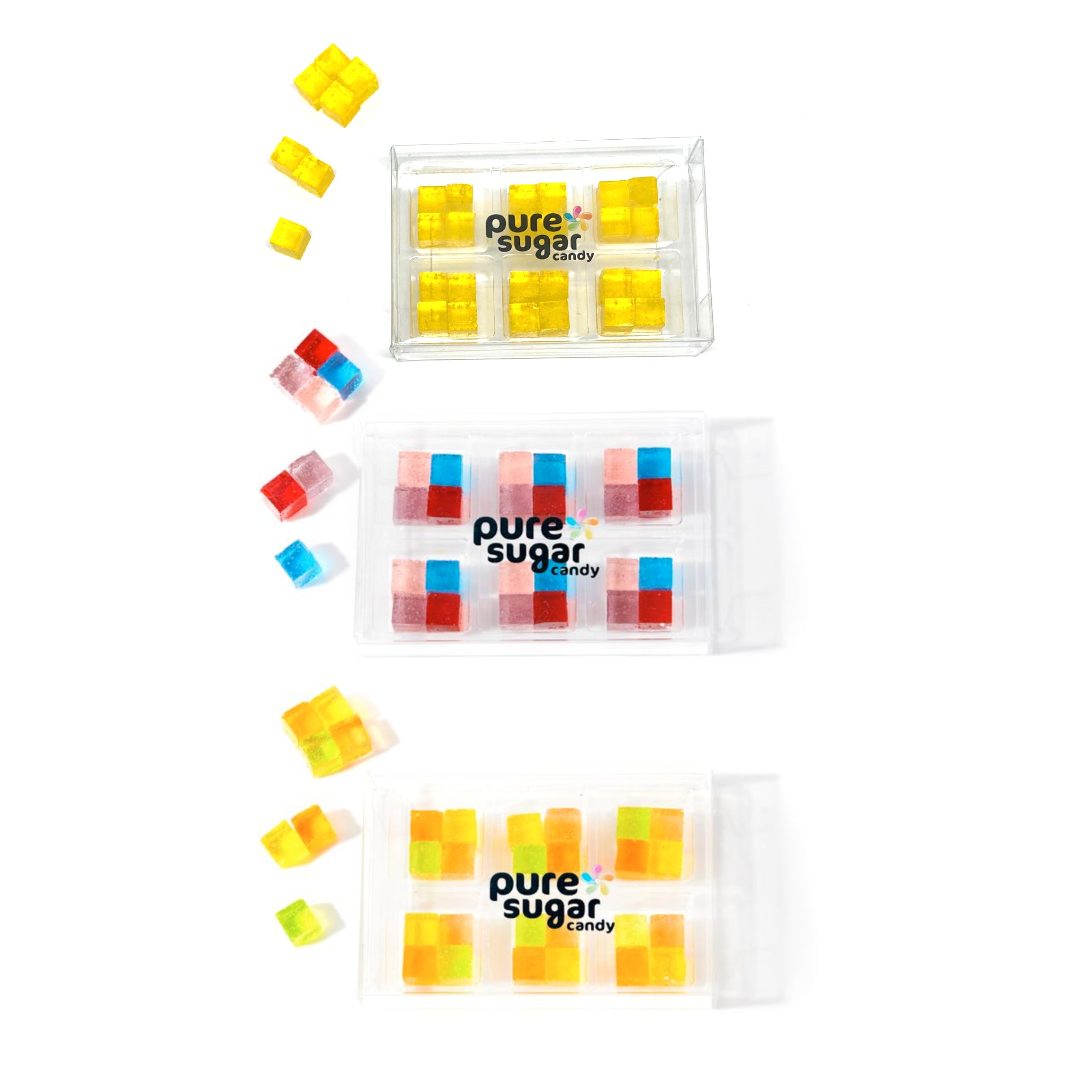 Each 6-pack comes with a resealable box so you can take your candy cubes anywhere you go when you need a little something sweet.