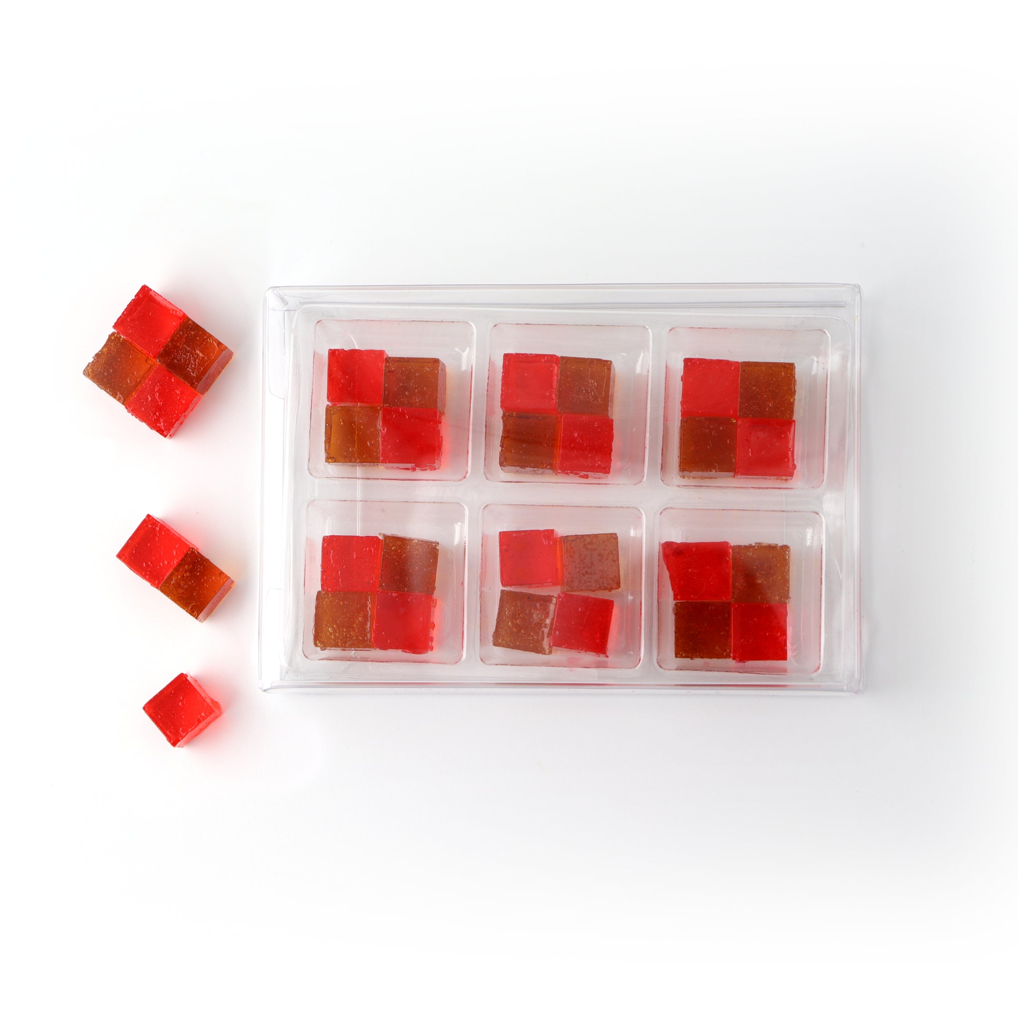 A little bit of candy that packs an amazing amount of flavor. Each cube is hand-poured using all-natural flavors; slight color variations may occur. With only 2 1/2 calories per cube it’s a little candy that can satisfy any sweet tooth!