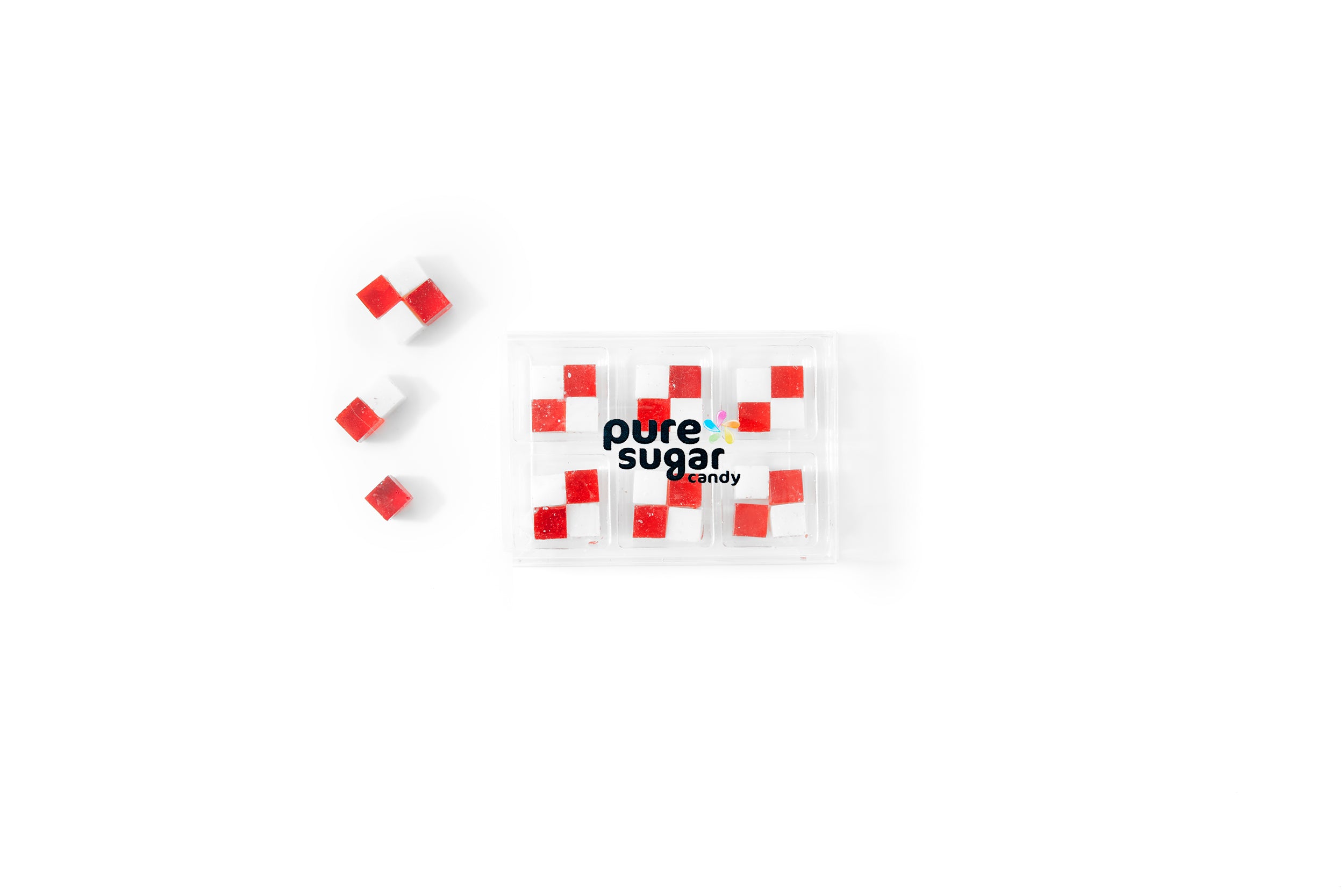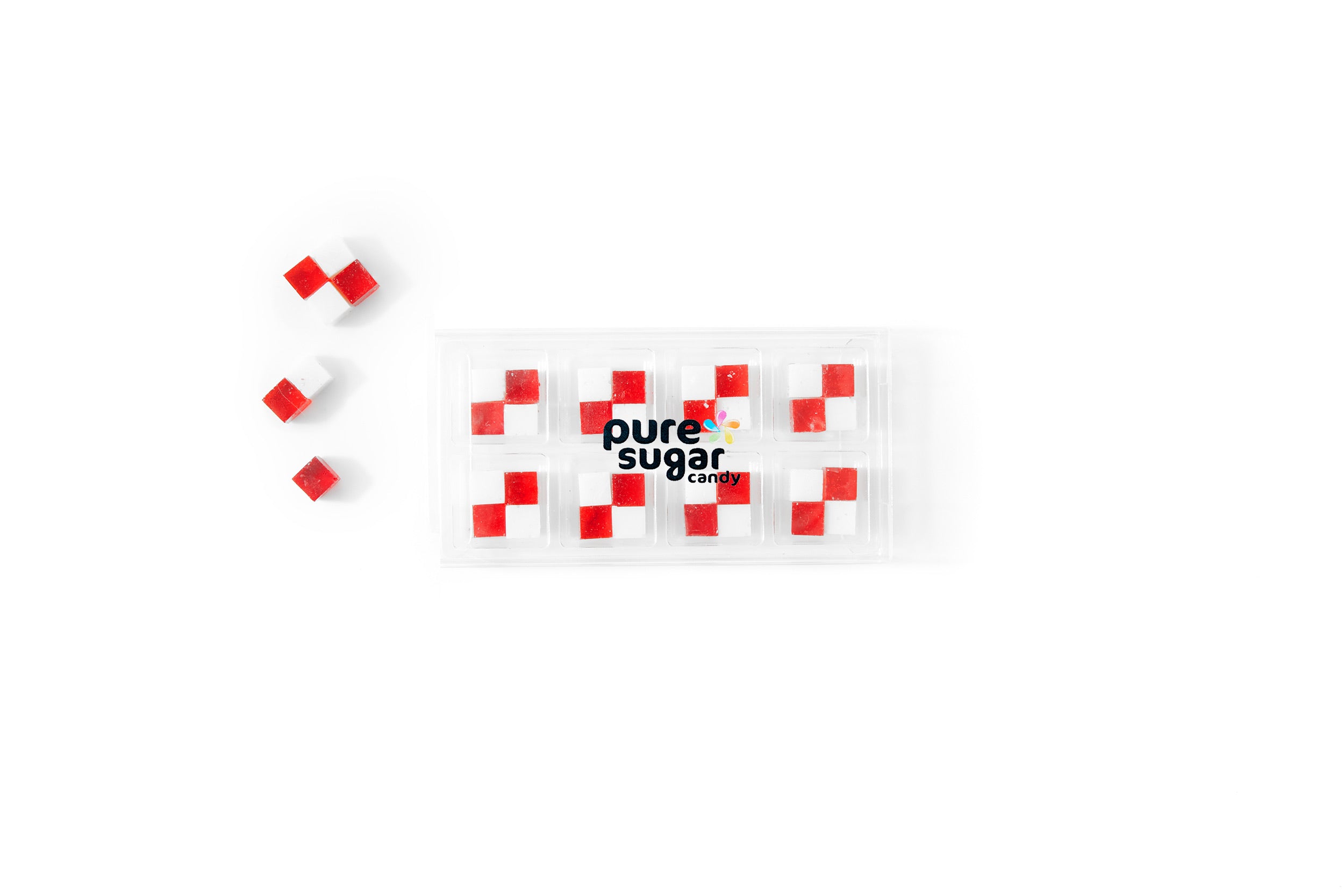 What does LOVE taste like? Many would say it's the rich taste of red velvet cake that tastes like LOVE! Start with a Red Velvet cube than add a Cream Cheese frosting cube and taste the LOVE. A little bit of candy that packs an amazing amount of flavor. Each cube is hand-poured using all-natural flavors; slight color variations may occur. With only 2 1/2 calories per cube it’s a little candy that can satisfy any sweet tooth!