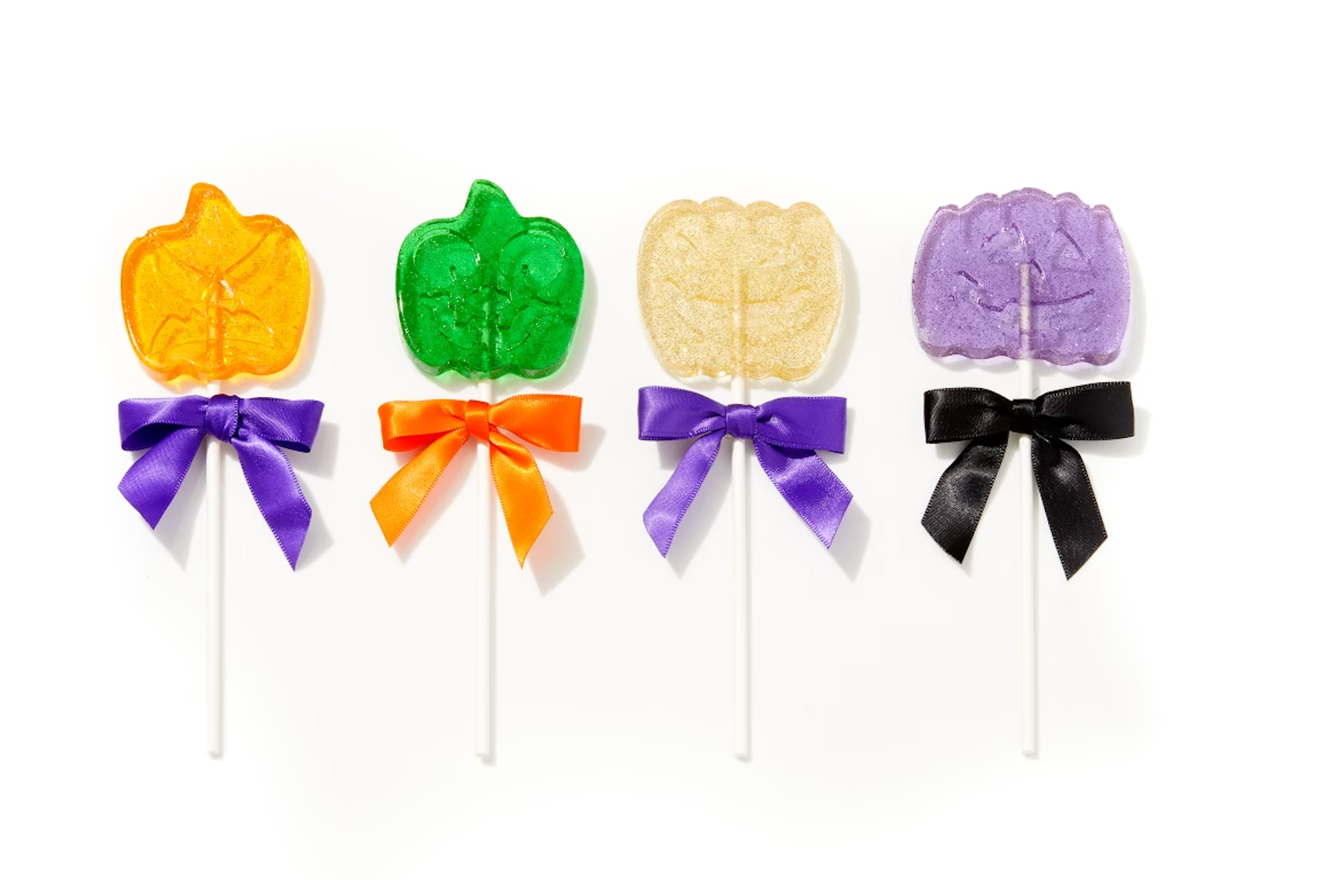 Included in this year's Halloween Collection of lollipops is something brand new! These large Jack O Lantern lollipops are beautifully shaped with lots of detail including edible glitter! They will arrive with a bow! Each lollipop is hand poured so slight color variations will occur.
