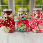 Introducing our LOVE Bear jars; the sweetest gift to share with your loved ones! Each reusable bear is 5 1/2 inches tall and comes filled with delicious gummies and adorned with a coordinating bow! With 3 options to choose from, there is something for everyone!